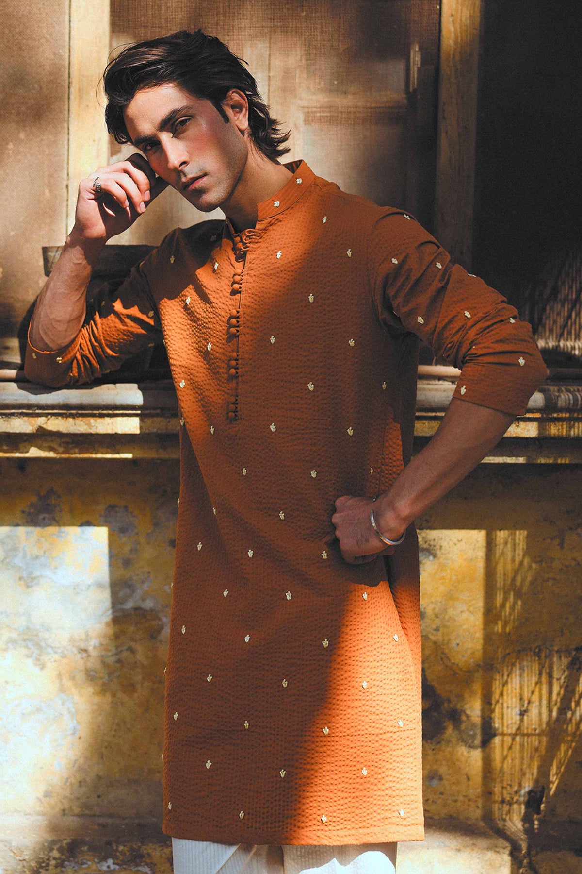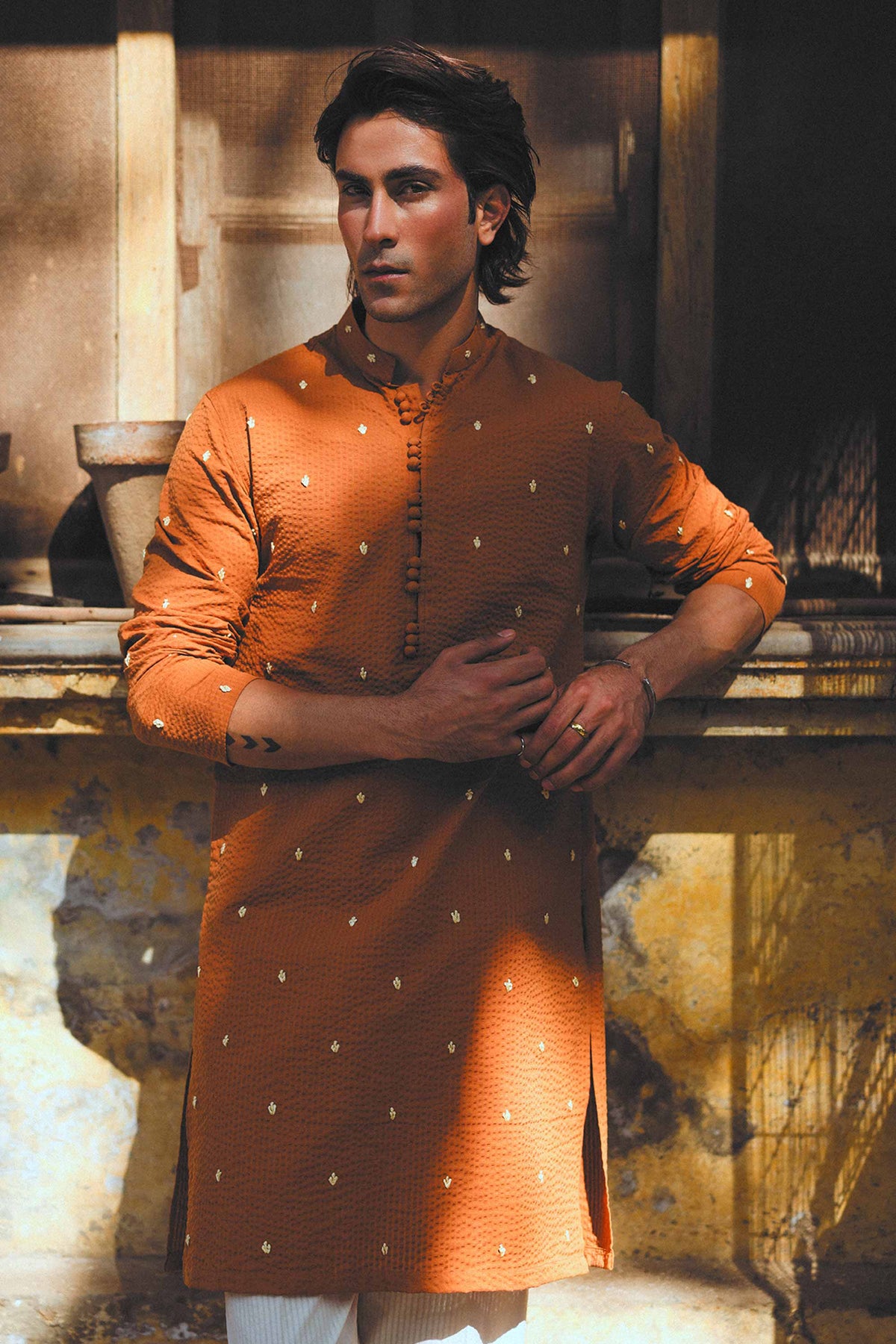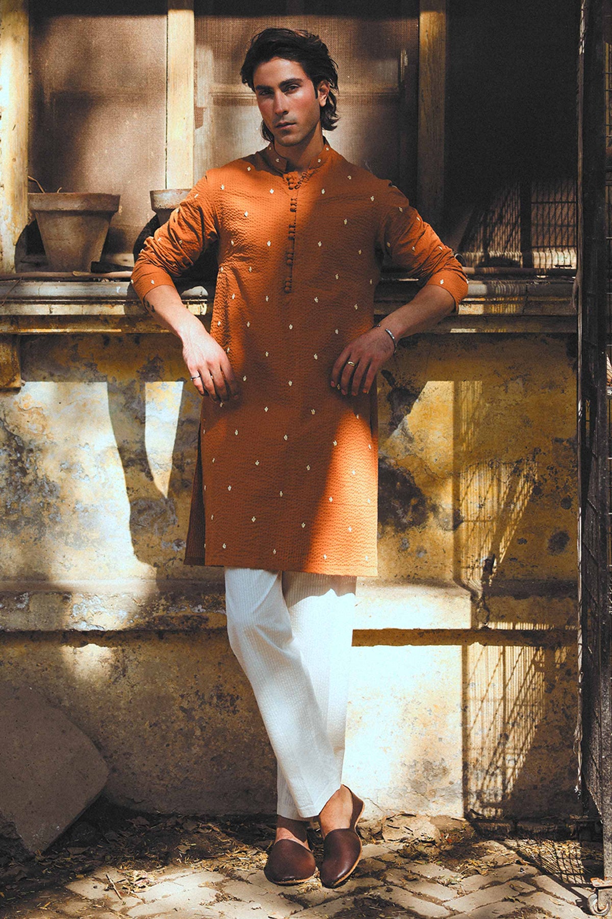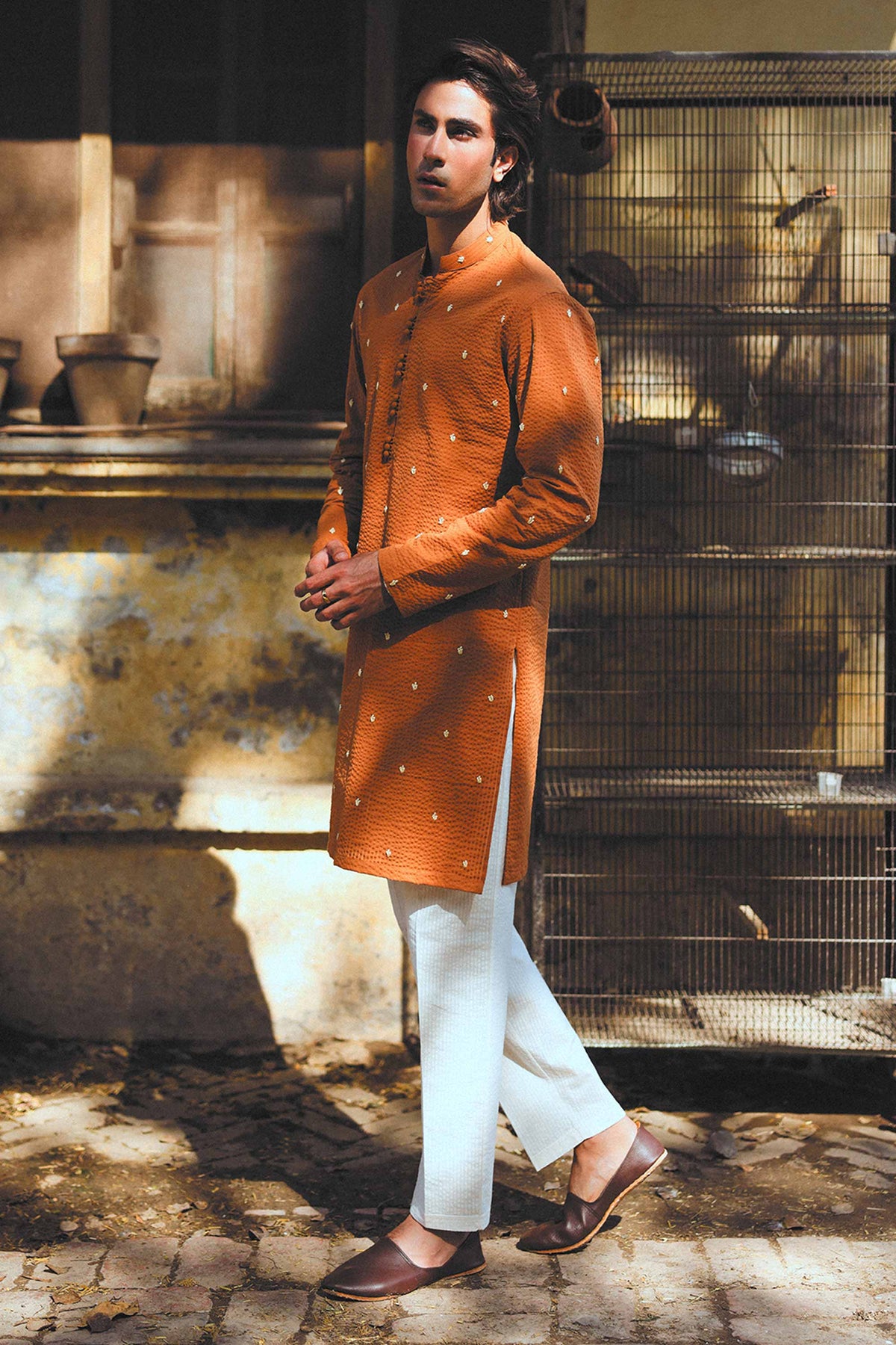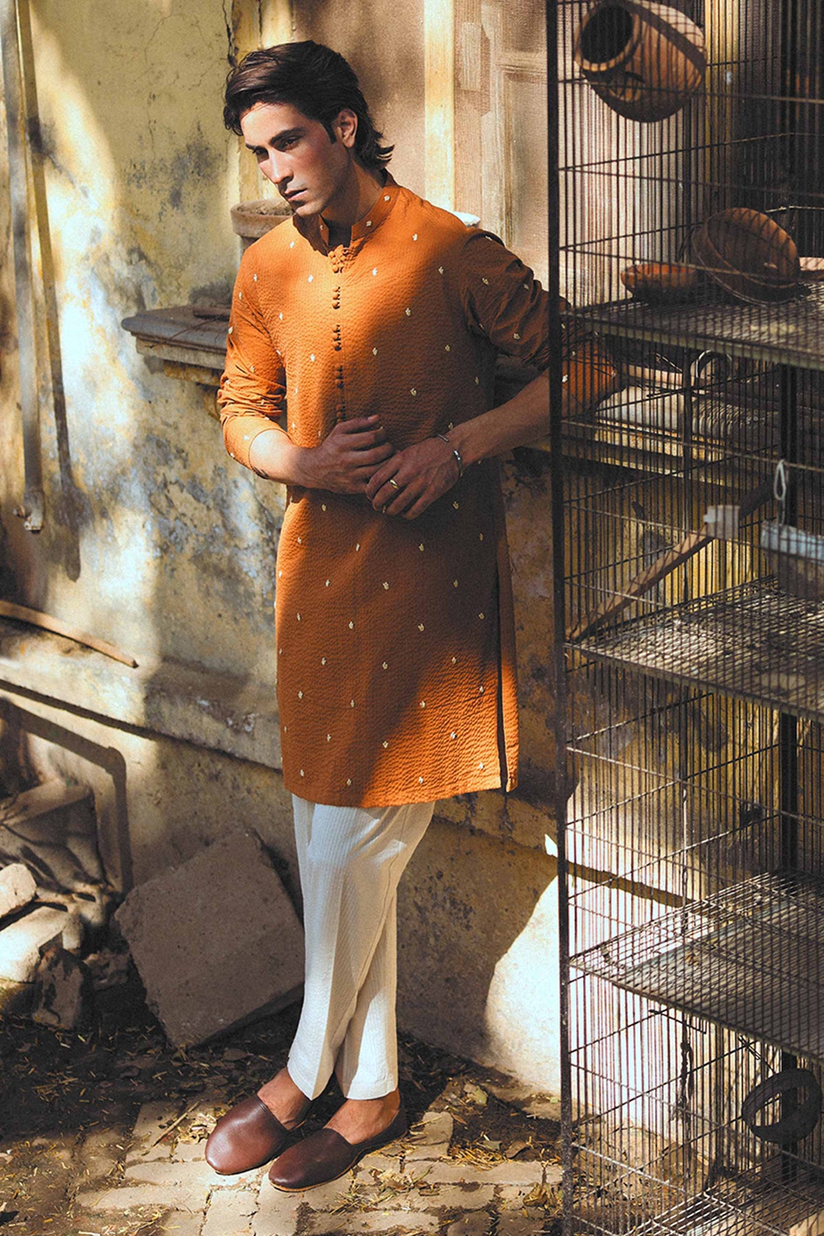 Infuse your wardrobe with a touch of art and tradition with our Mustard Handcrafted Motif Spread Kurta Trousers Set. This striking ensemble combines the warm, rich hue of mustard with intricate handcrafted motifs, offering a perfect blend of contemporary flair and cultural craftsmanship. Ideal for both festive celebrations and casual gatherings, this set promises to make you stand out in style and elegance. The kurta is crafted from high-quality fabric in a bold mustard shade, adding a vibrant, energetic appeal to the set. This warm, inviting colour is perfect for making a statement at any occasion. The handcrafted motifs spread across the kurta are a testament to fine craftsmanship. Each motif is carefully embroidered, adding texture, depth, and a unique artistic element to the design. With a traditional yet modern fit, the kurta offers a sleek and comfortable silhouette that suits various body types. Its simple cut allows the beautiful motifs to shine, creating a balanced, stylish look. Paired with off white trousers, this set offers both style and comfort. The trousers provide a tailored, flattering fit, perfectly balancing the vibrant kurta.