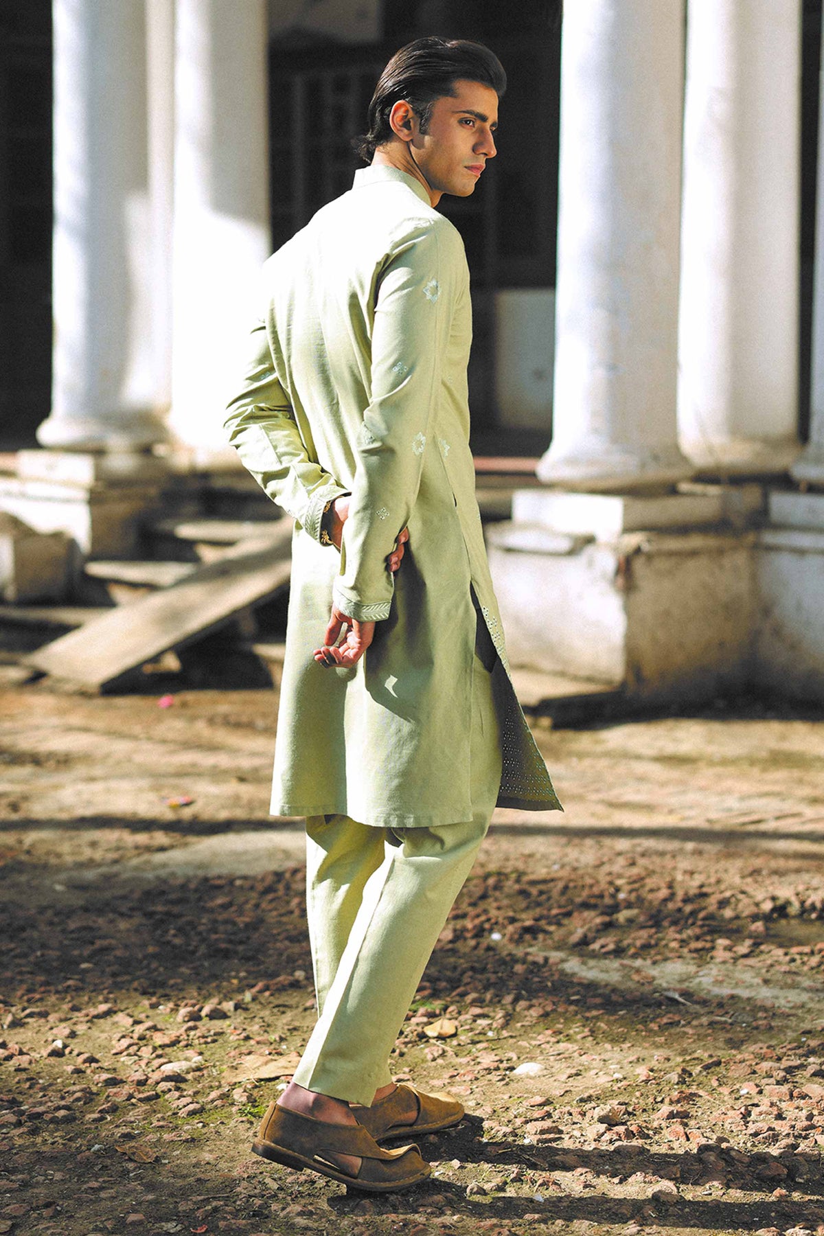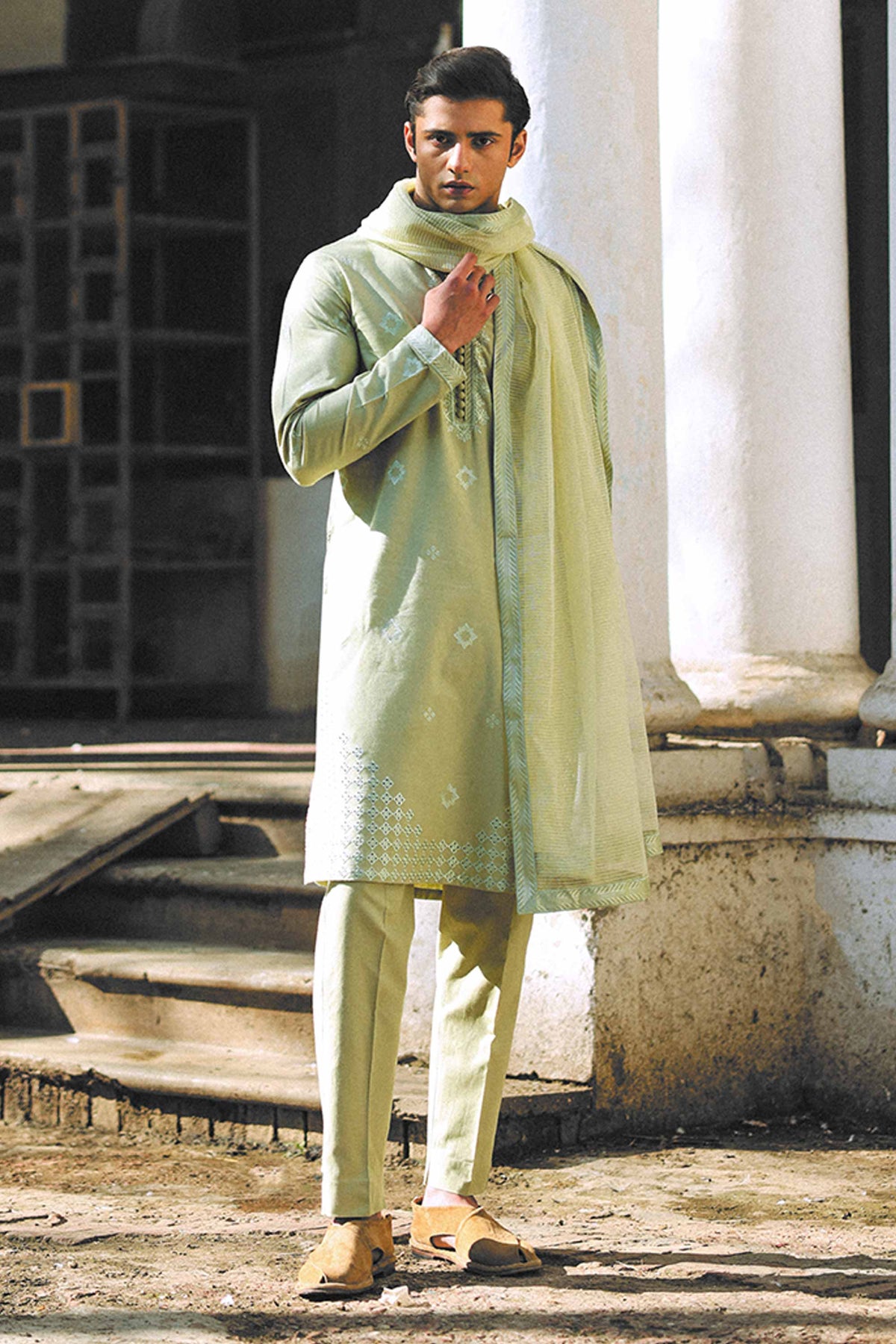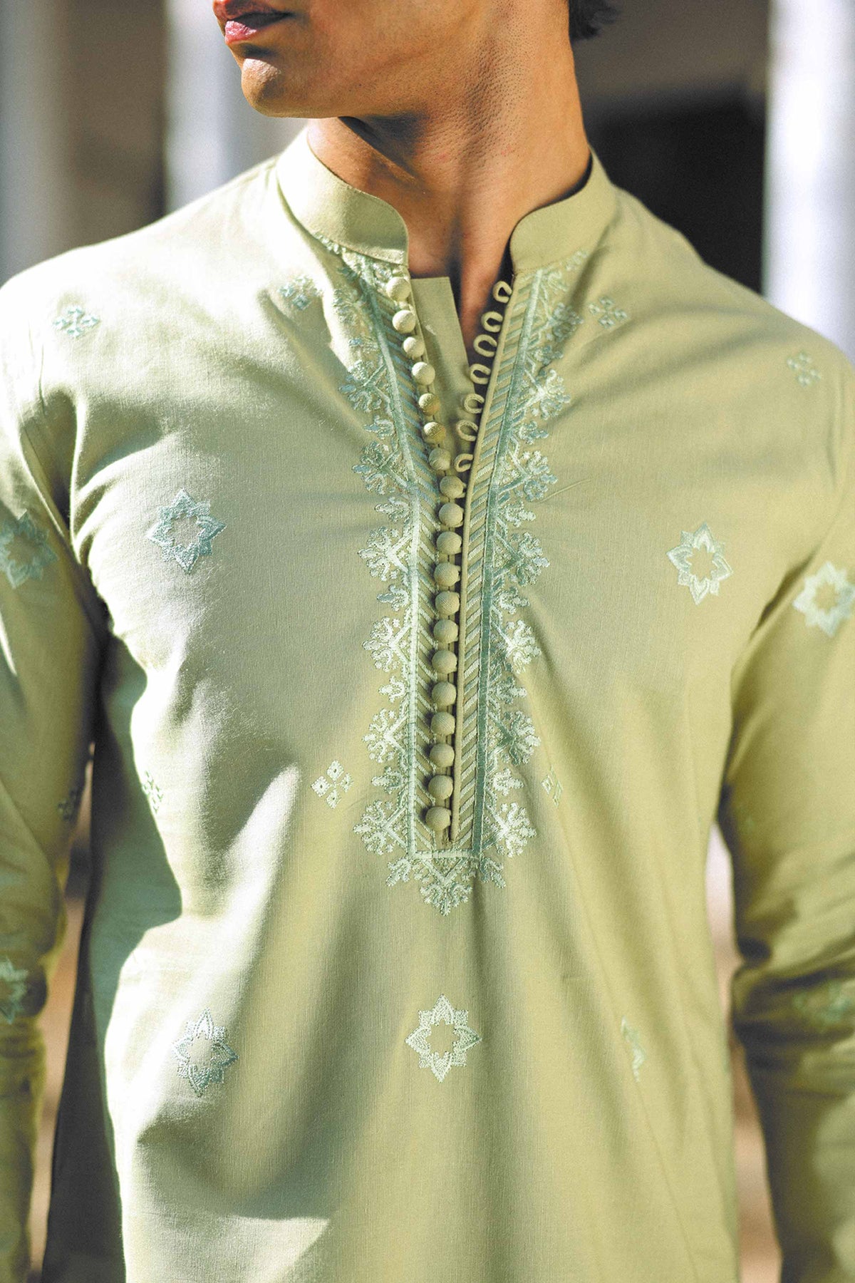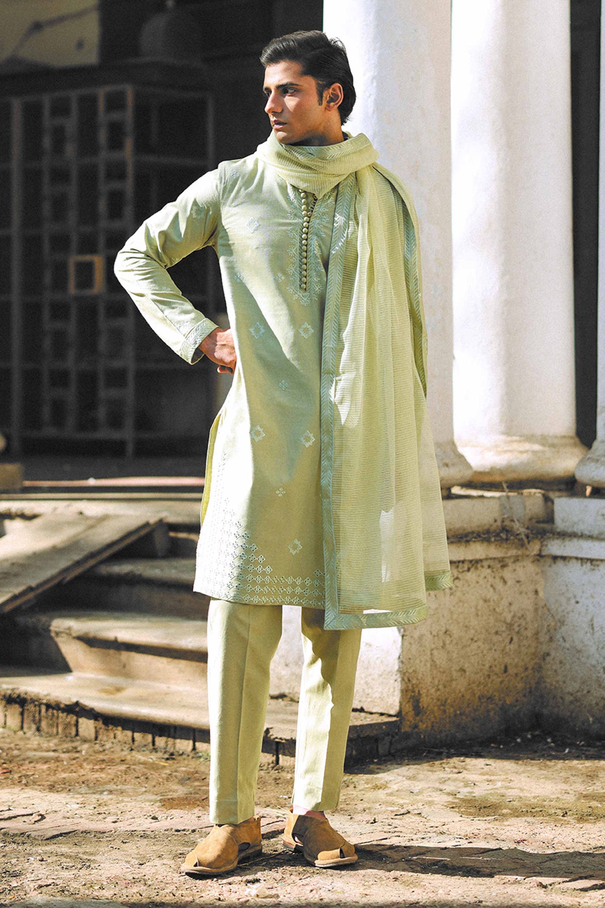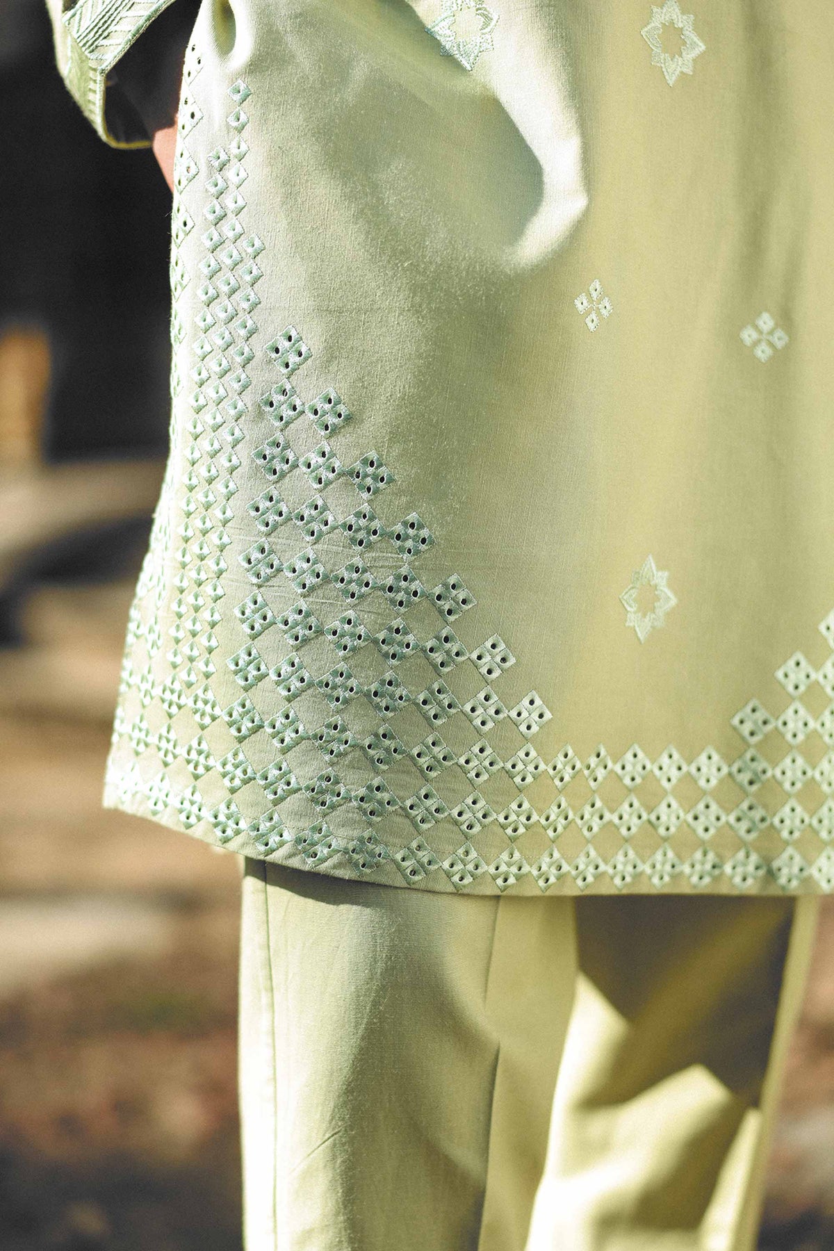 Step into timeless elegance with our Pistachio Embroidered Kurta Trousers Set. The soft, refreshing pistachio hue, combined with intricate embroidery, makes this set the perfect choice for any occasion, from festive celebrations to casual gatherings. Designed for modern sensibilities, this ensemble offers comfort, style, and sophistication. Crafted in premium cotton, lightweight fabric, the pistachio colour offers a soft and refreshing look that is both flattering and unique. It provides a cool, calm aesthetic perfect for any season. The kurta is beautifully adorned with fine, hand-embroidered motifs that add depth and artistry to the design. The embroidery subtly enhances the overall look, creating an effortlessly elegant feel. The kurta features a modern, tailored fit that provides a flattering silhouette while maintaining the essence of traditional style. The clean lines and subtle details make it suitable for a range of occasions. The trousers are designed to complement the kurta perfectly, offering a slim, flattering fit that adds balance to the look. They provide a comfortable and stylish option, ensuring a cohesive and complete outfit. The pistachio colour and delicate embroidery make this set easy to style for a variety of occasions, whether you’re dressing it up with accessories or keeping it casual with simple footwear.